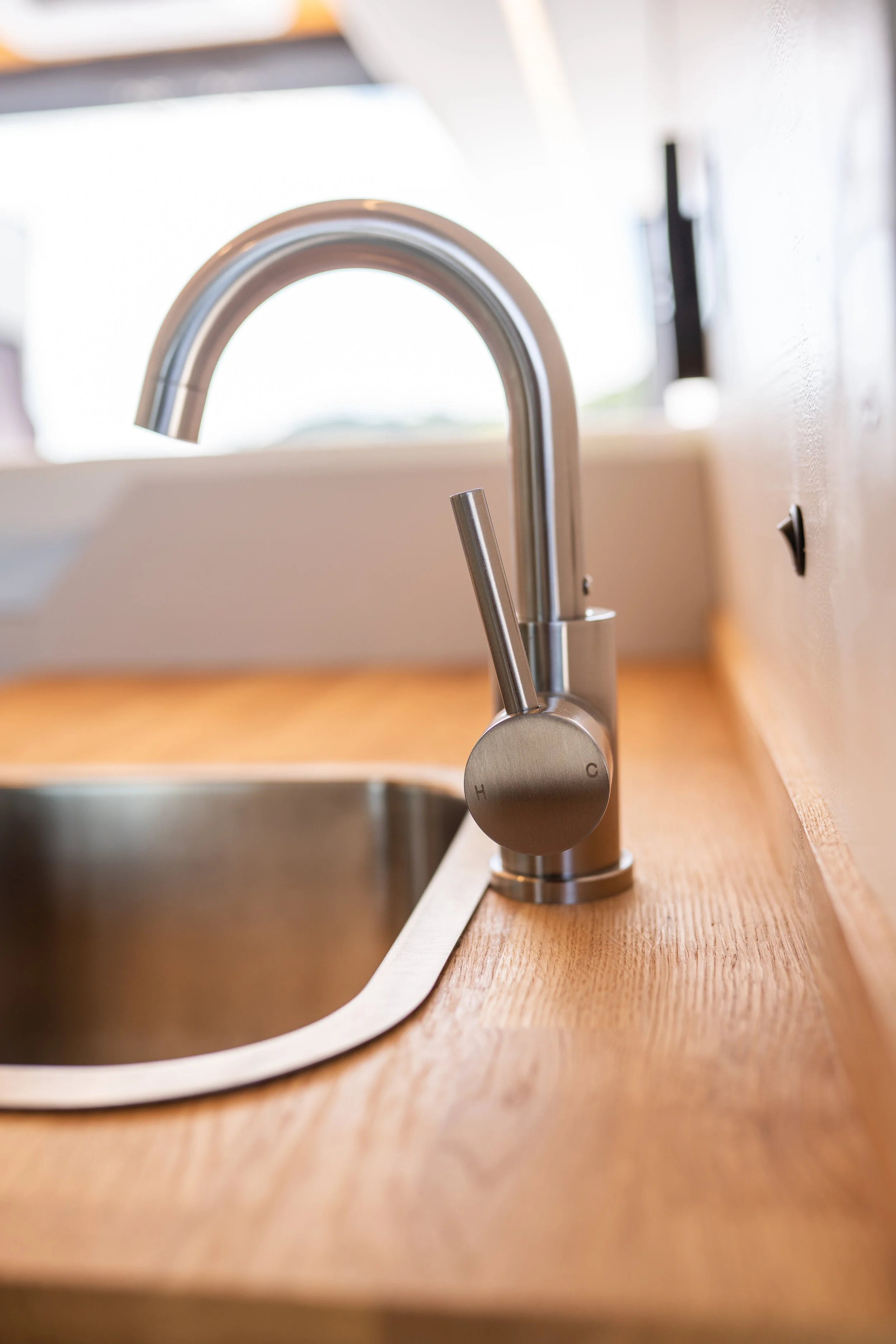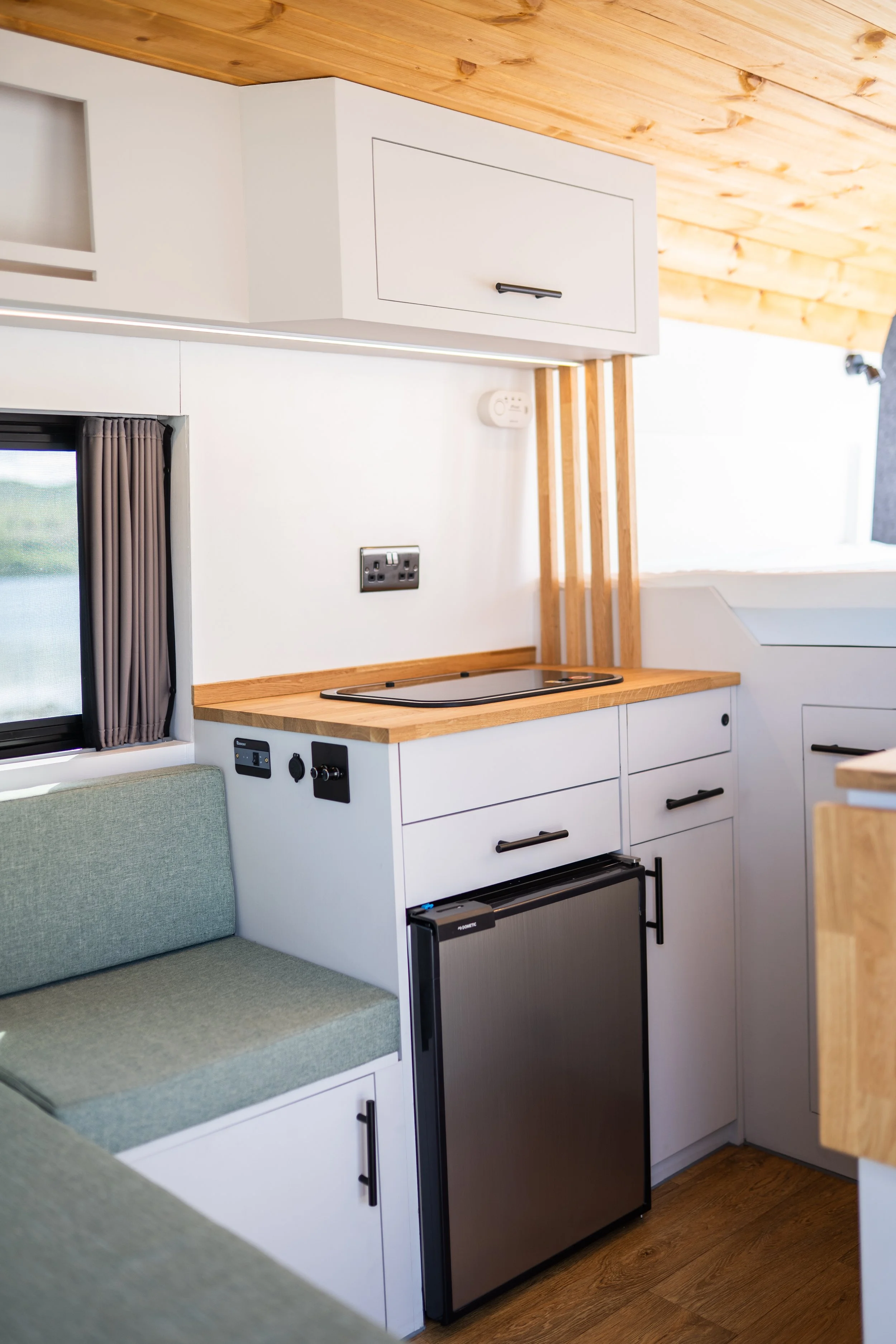 When off-grid a large water tank is essential and with our 125l fresh water tank situated inside the campervan to reduce the risk of frost it can provide the need for water for a longer period of time.