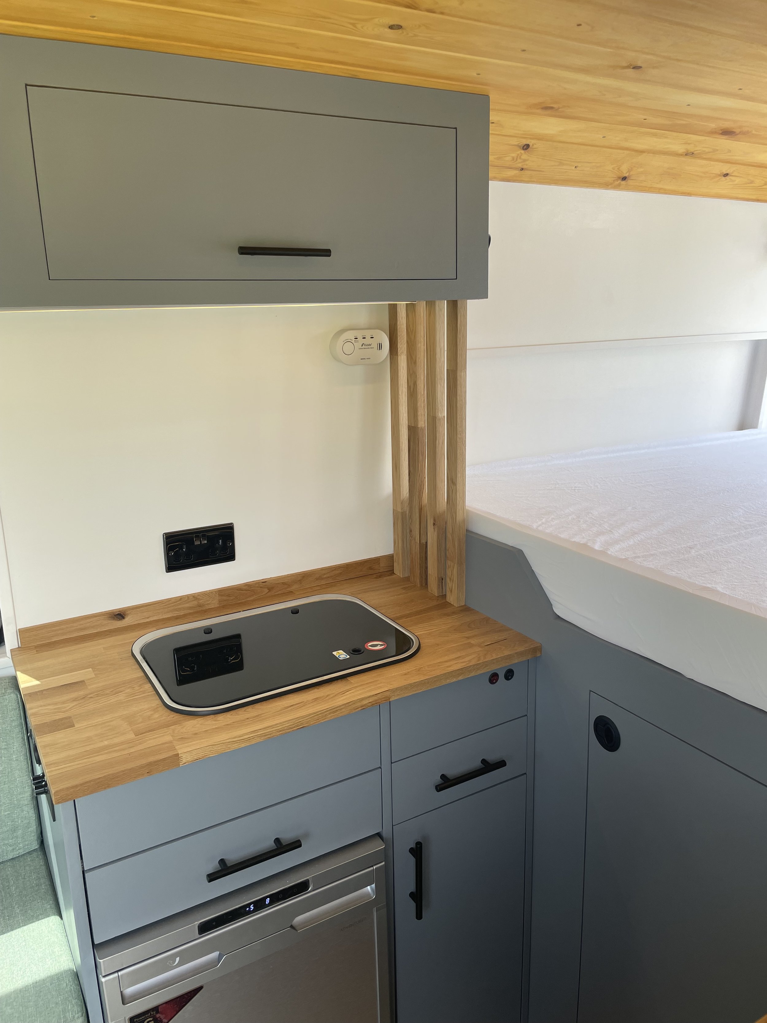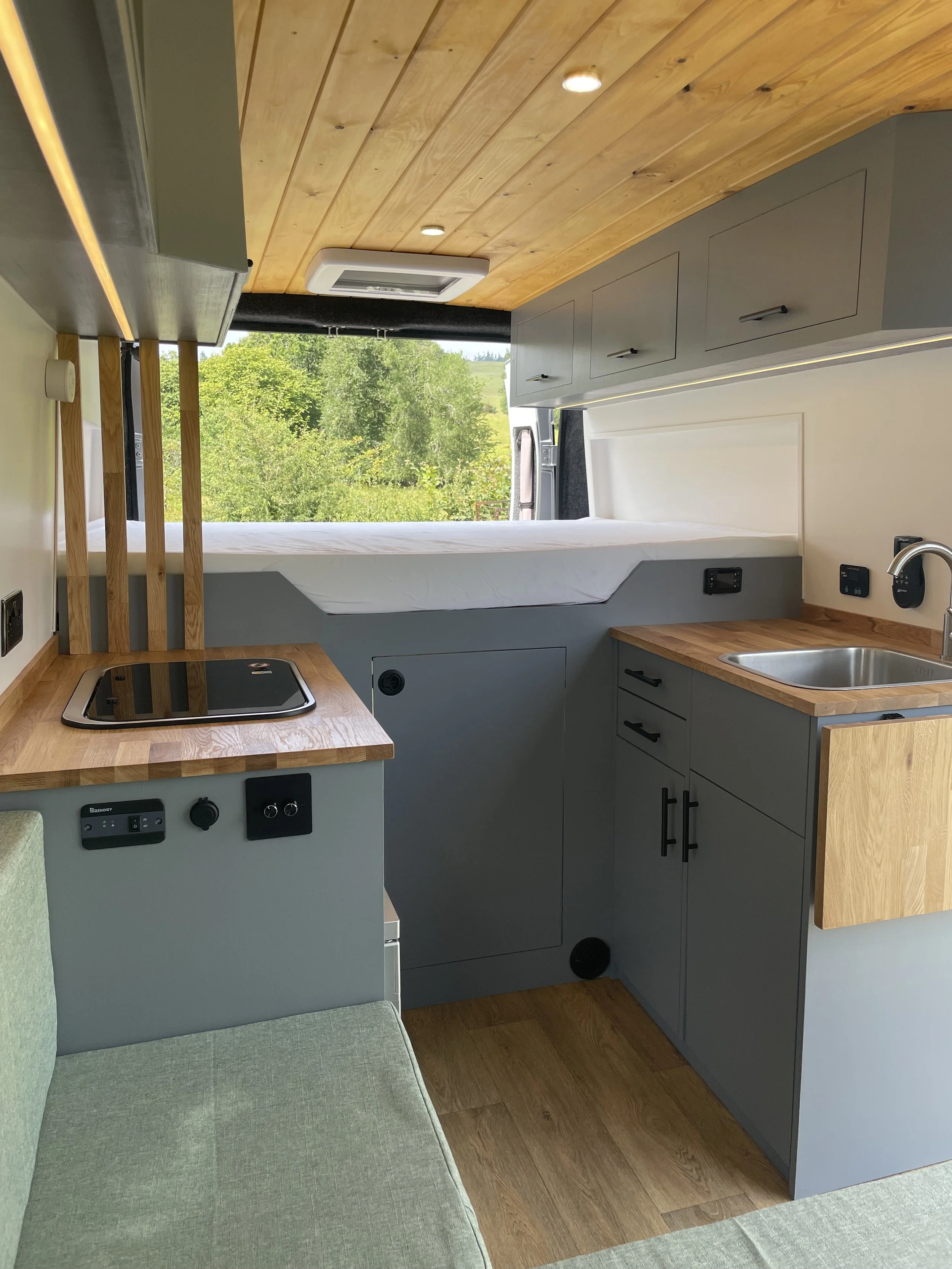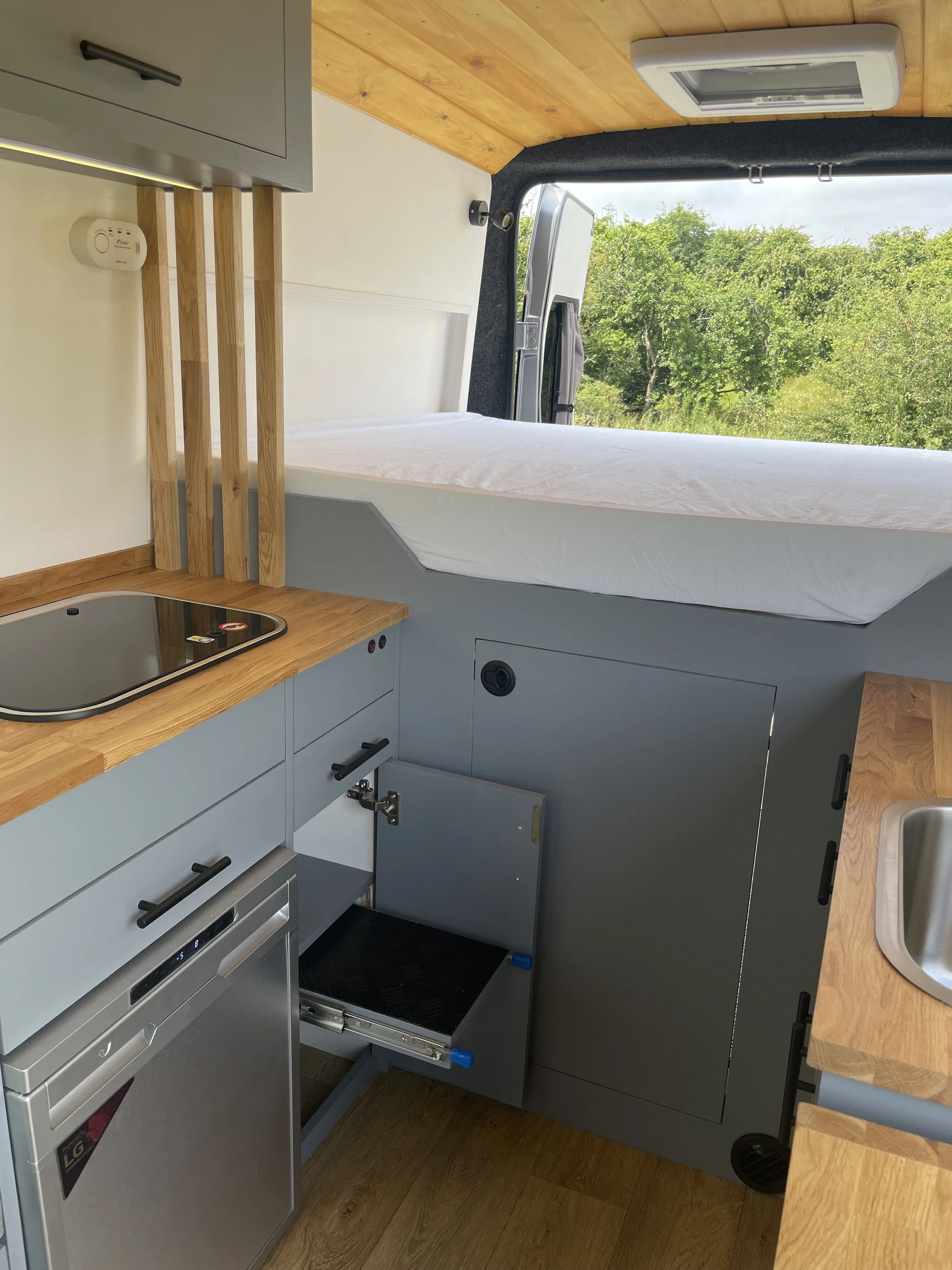 When off-grid a large water tank is essential and with our 125l fresh water tank situated inside the campervan to reduce the risk of frost it can provide the need for water for a longer period of time.